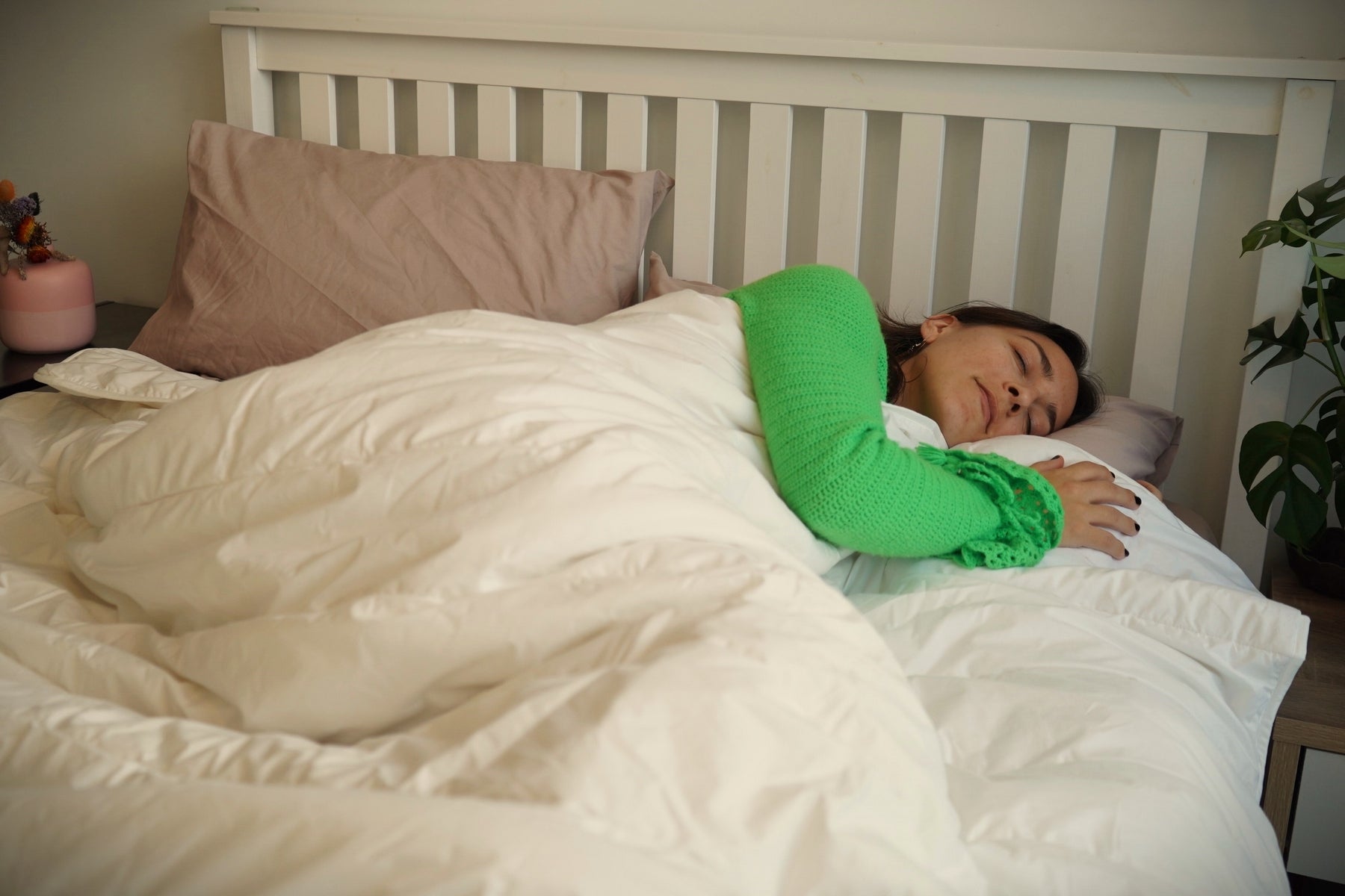 Woman Sleeping on a Kind Face Wool Pillow